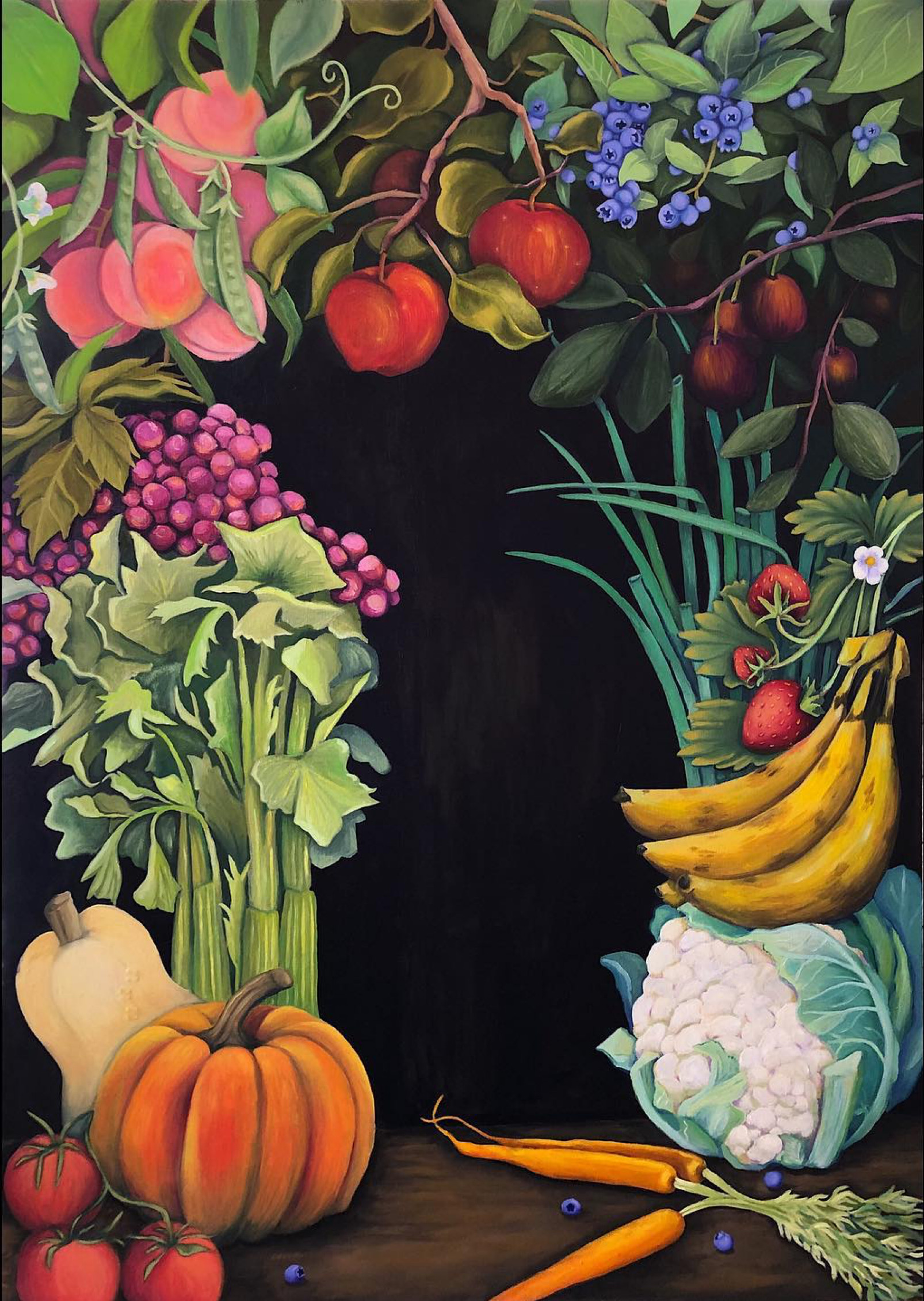 Inspired but life, colour and the imagination. Most of my work consists of fruits, vegetables, nature and the occasional creature. My work is bright, bold and vivid, not everyone's cup of tea but I'm eager to connect with fellow artists and venues to curate something exciting for SALA 2025.