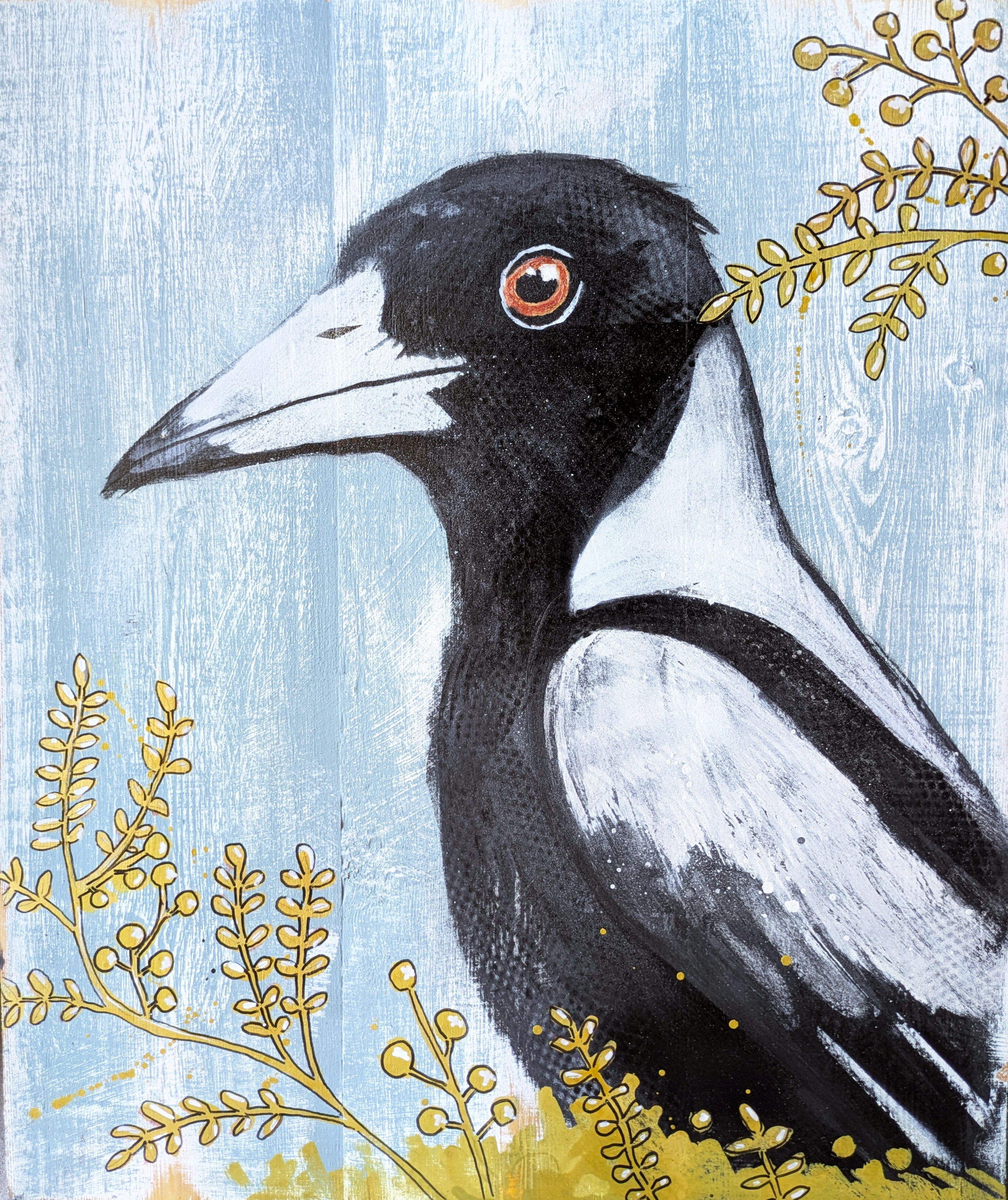 Based in Willunga, I create mixed media works on reclaimed timber, blending graphic forms with subtle realism. I allow the wood grain, knots, and imperfections to inform each composition. Using layered, non-traditional techniques my work explores the balance between raw material and refined imagery.