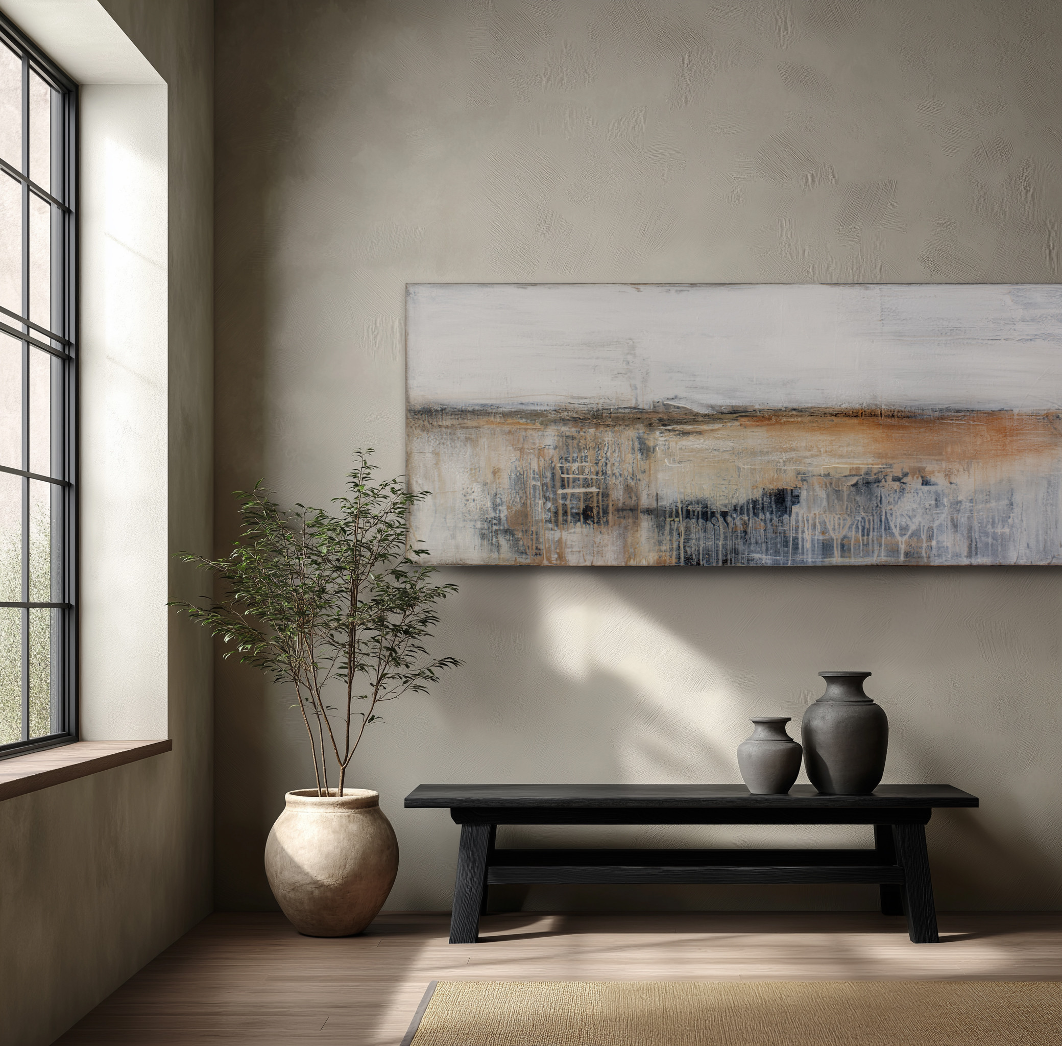 Working with a palette of earthy neutrals, my practice is guided by natural forms, textures, and the raw beauty of the environment. Through layered materials and intuitive mark-making, I create abstract pieces that evoke a sense of calm, depth, and connection to nature.