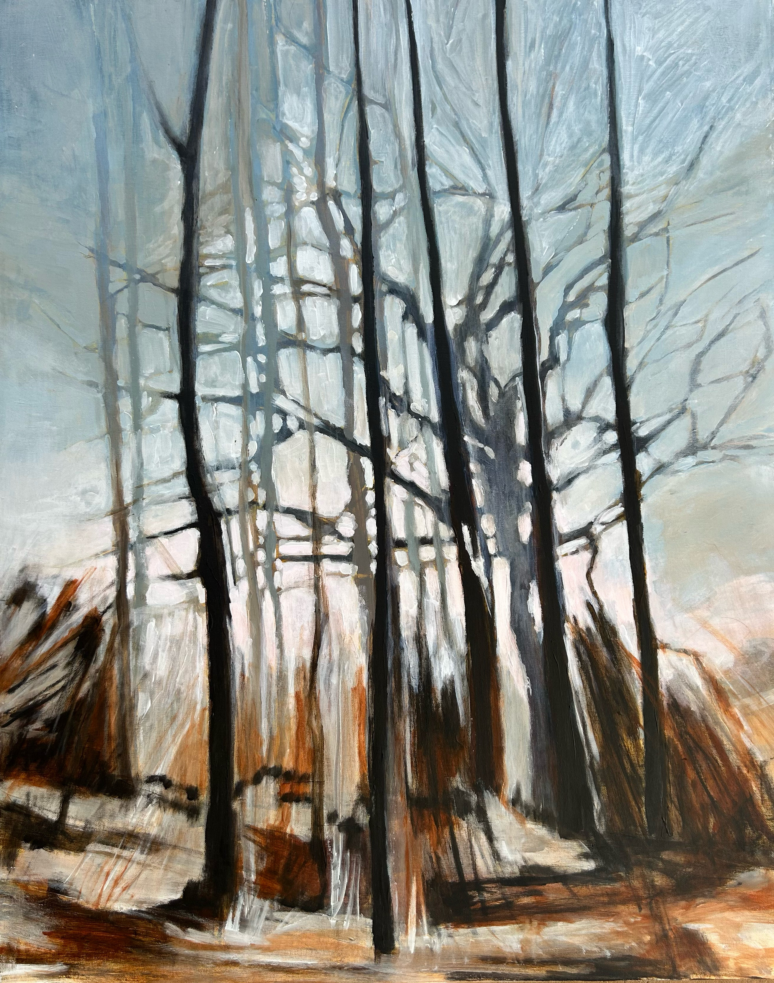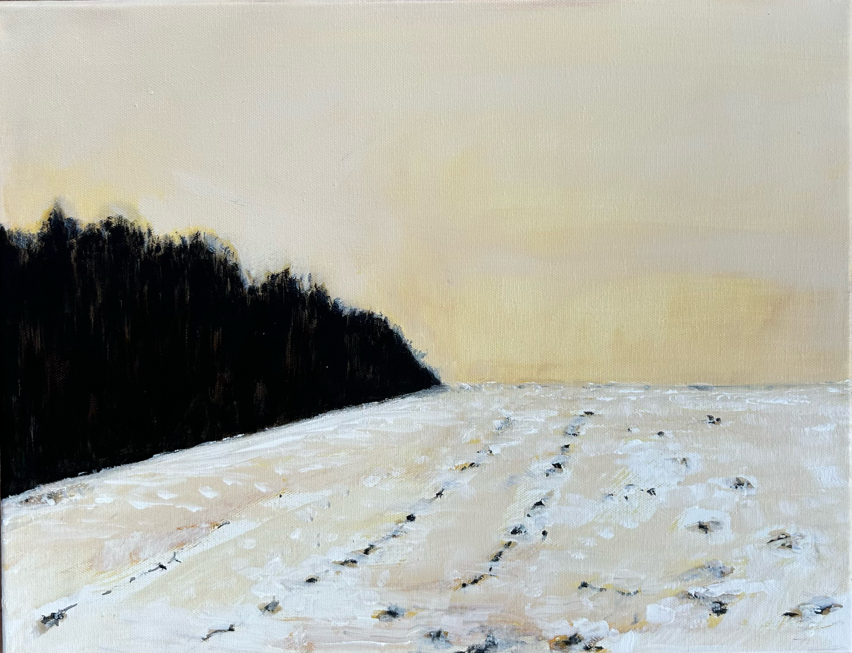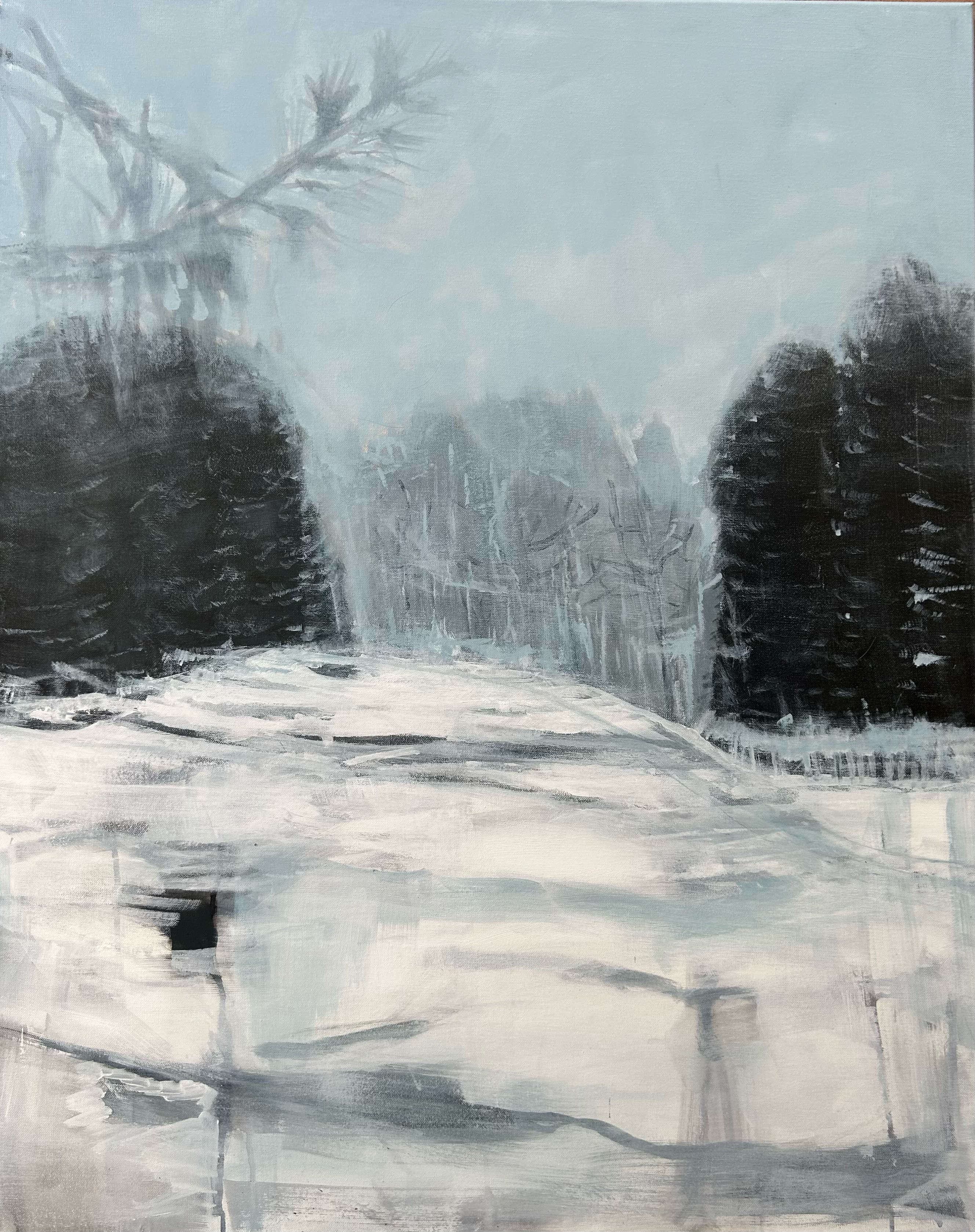 These paintings explore winter landscapes as spaces of quiet transformation, where snow softens boundaries and reduces the world to gesture, structure, and atmosphere. Rooted in observation but moving toward abstraction, the work shifts between depiction and memory.
