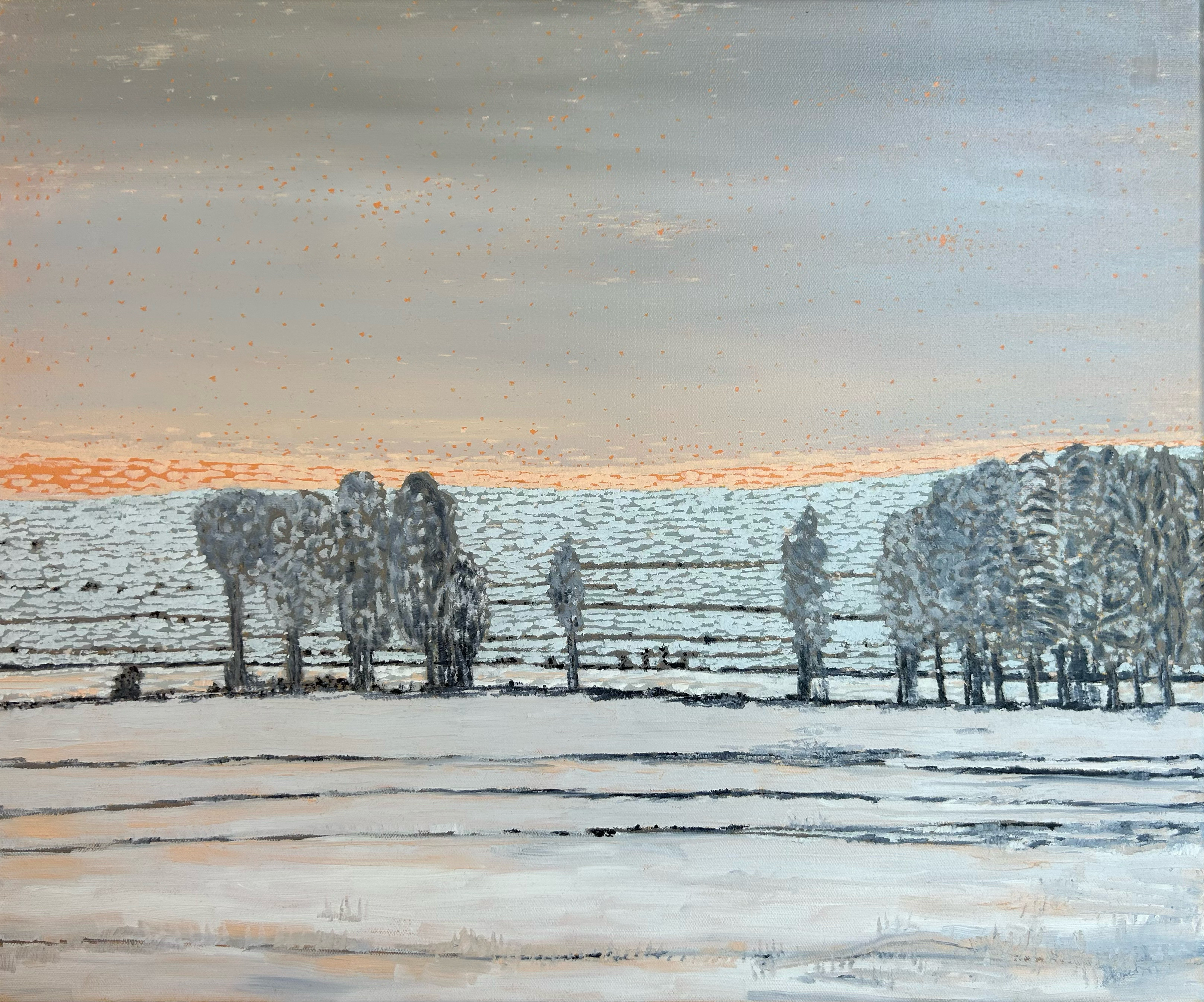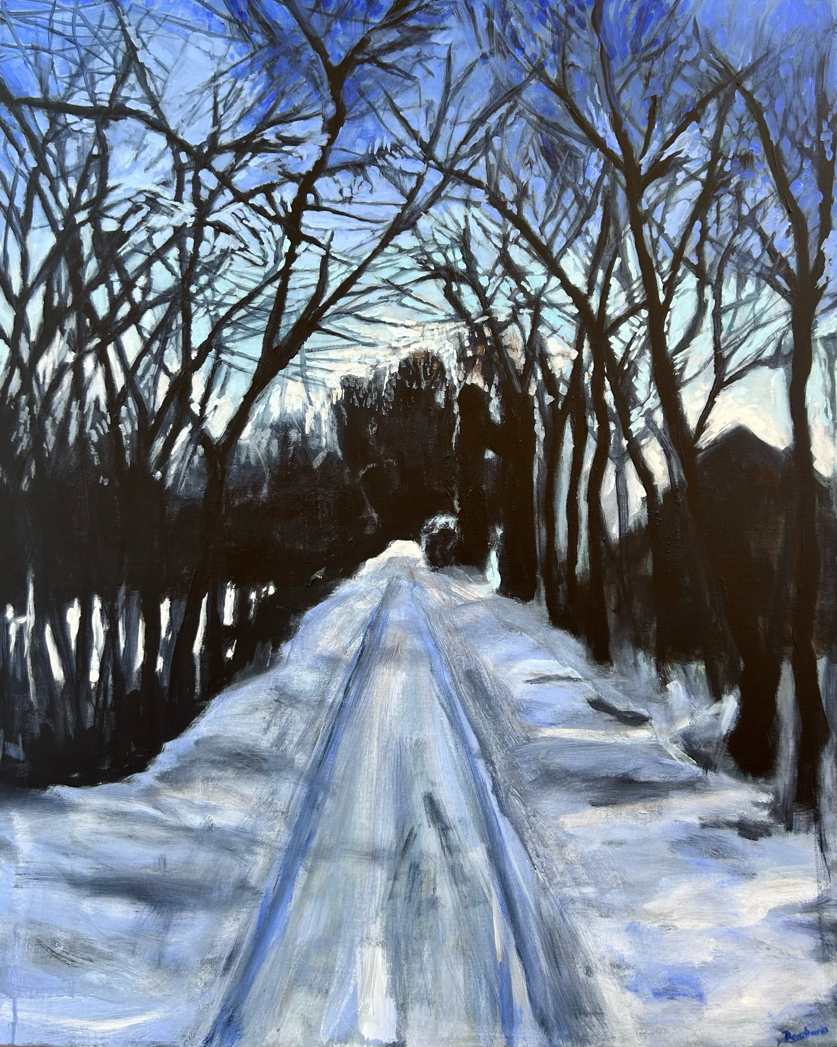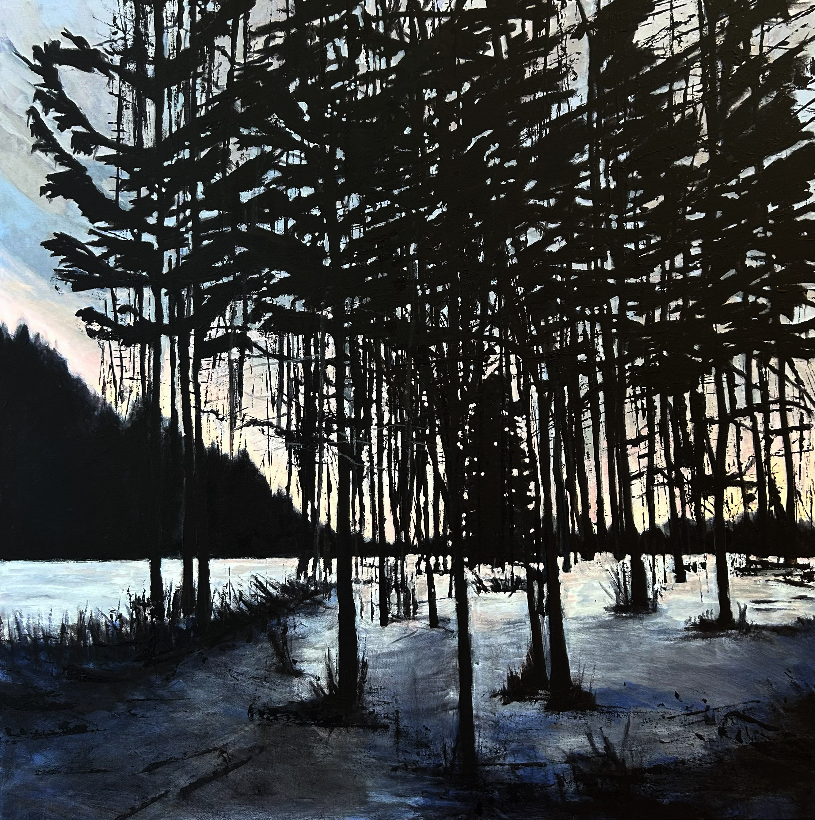 These paintings explore winter landscapes as spaces of quiet transformation, where snow softens boundaries and reduces the world to gesture, structure, and atmosphere. Rooted in observation but moving toward abstraction, the work shifts between depiction and memory.