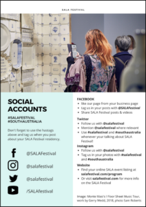 The SALA Participation Resource is a comprehensive pdf document that gets updated every year by SALA staff, and acts as a more in-depth guide for taking part in the SALA Festival.