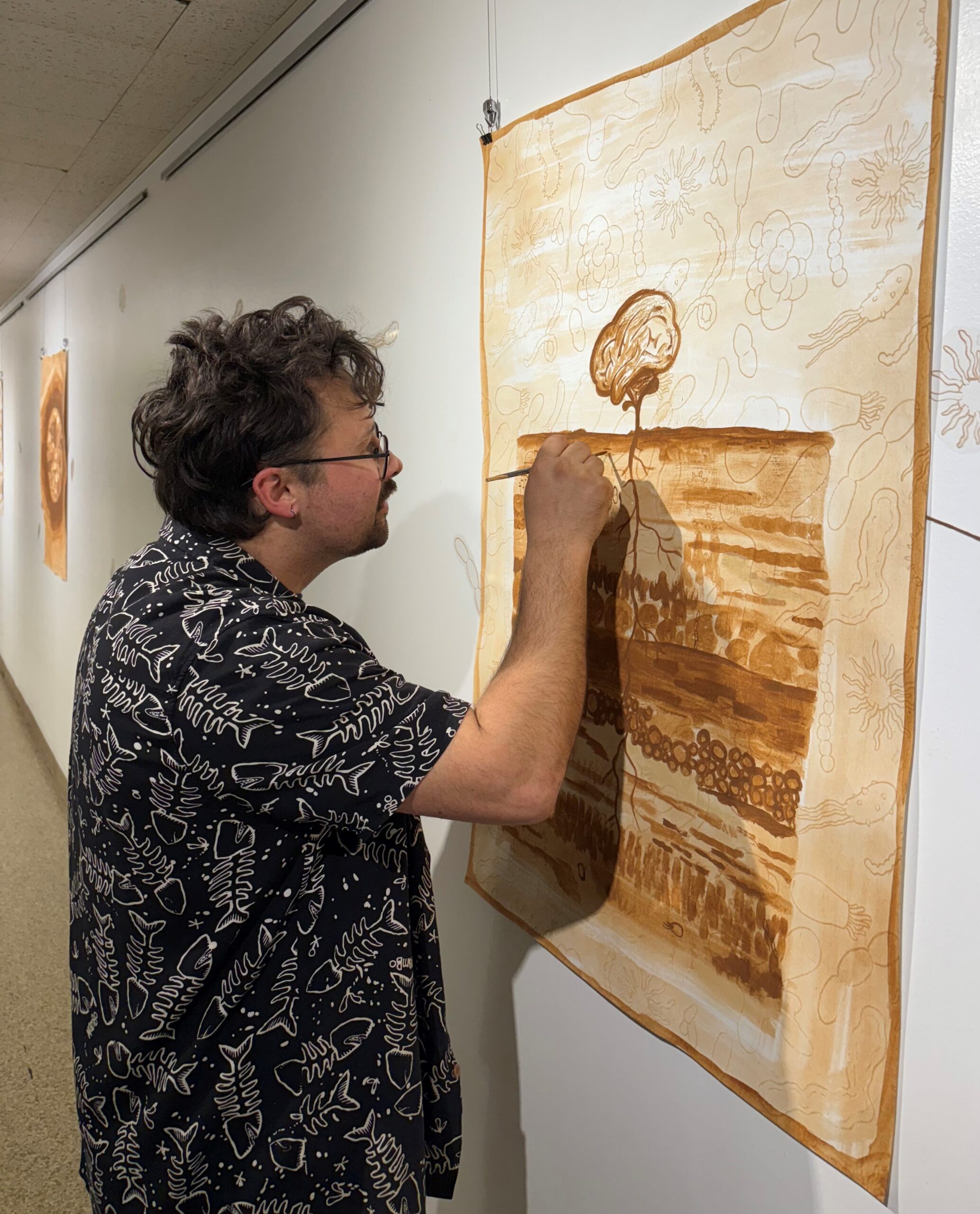 As the 2025 SALA artist in residence, Jake Holmes was supported to collaborate with the Dietetics Unit, with Flinders University College of Nursing and Health Sciences and Flinders University College of Science and Engineering to explore gut health and the influence of microbiomes, both in our soil and in our bodies, not only on our physical wellbeing, but also our mental health.